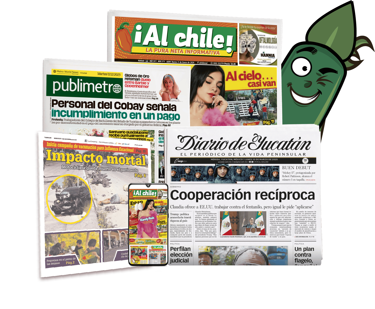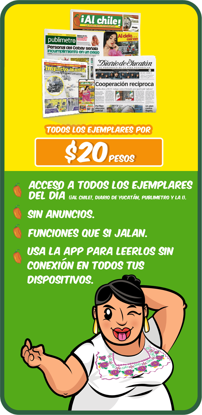 Para dudas, comentarios o aclaraciones sobre tu compra de la edición digital, comunícate con el Centro de Atención a Clientes de Diario de Yucatán al (999) 942 2235 o vía WhatsApp al 9993 50 2287. Imágenes ilustrativas. No aplica con otras promociones vigentes. Los precios mostrados son válidos únicamente en México. Consulta términos y condiciones aplicables.